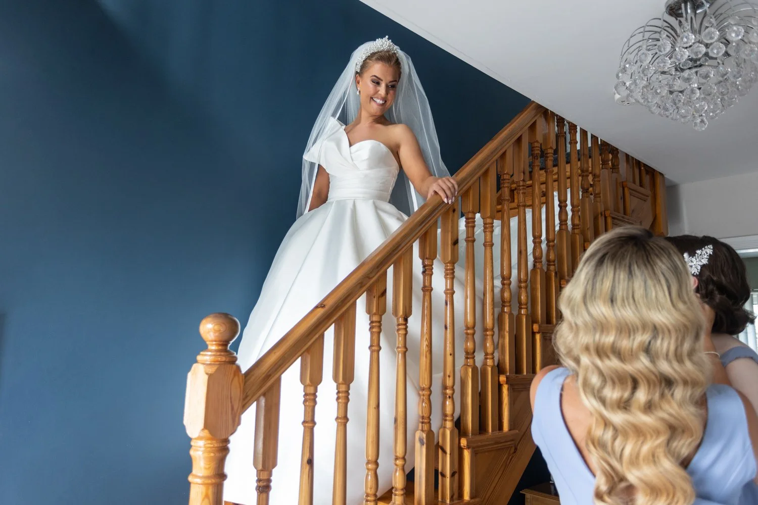 Grace and the girls all got ready from her Mum’s home in Banbridge on the morning of the wedding. It was a great atmosphere all morning - the girls enjoyed a delicious wedding breakfast made by JeanieBells to get them all fuelled up for the day ahead before getting all glammed up. The fabulous Mary Maguire created a beautiful upstyle and accessorised it with a beautiful pearl head piece created by Aimee Farrell Designs. The talented Fiona Murphy created this flawless makeup look which made the bride look radiant and glowing.